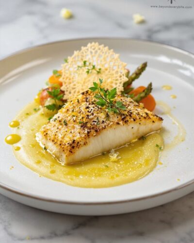 • Seared Sea Bass with White Wine Sauce